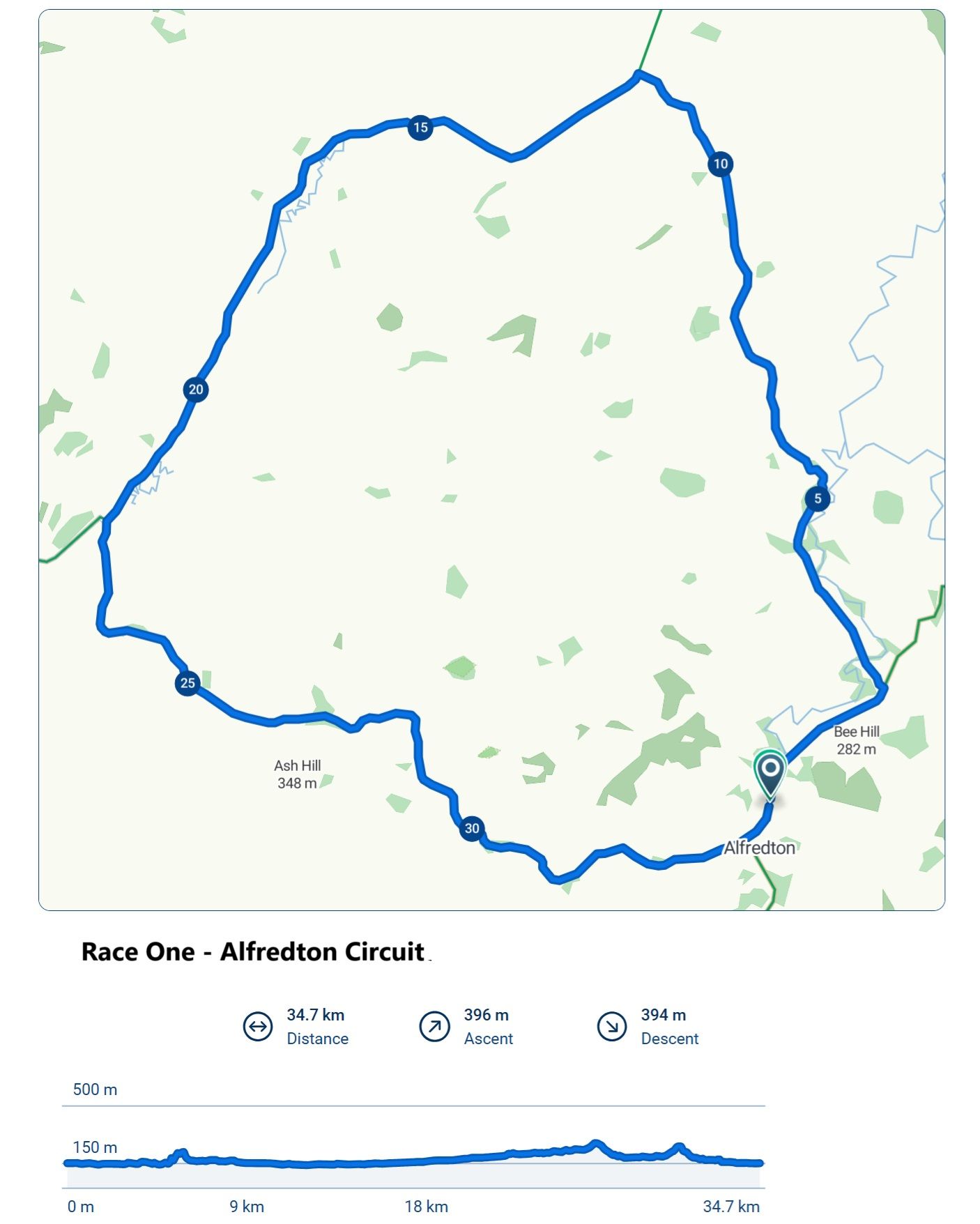 Note; Registration at Alfredton Hall from 8.00am to 9.30am